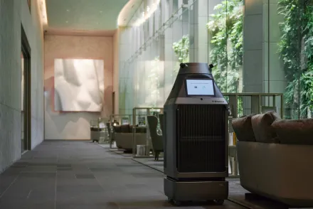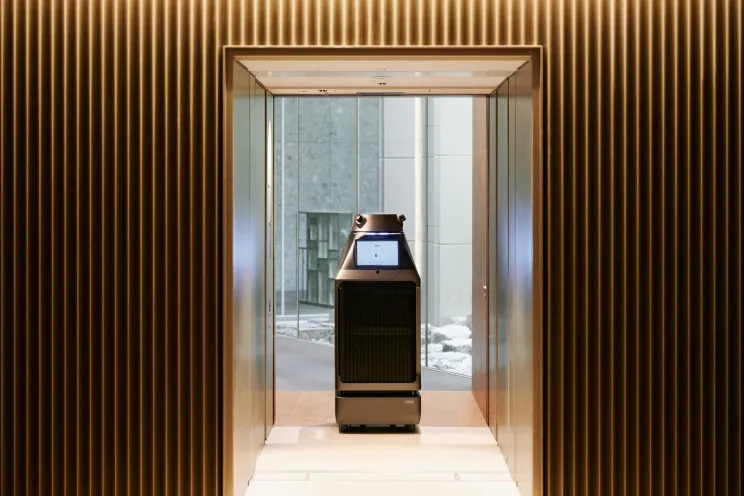 センサーで周囲の状況を読み取り、人や障害物を避けながら目的地まで自動配送します。人の手を介さずに、エレベーターの乗り降りや、セキュリティドアを通過することも可能です。