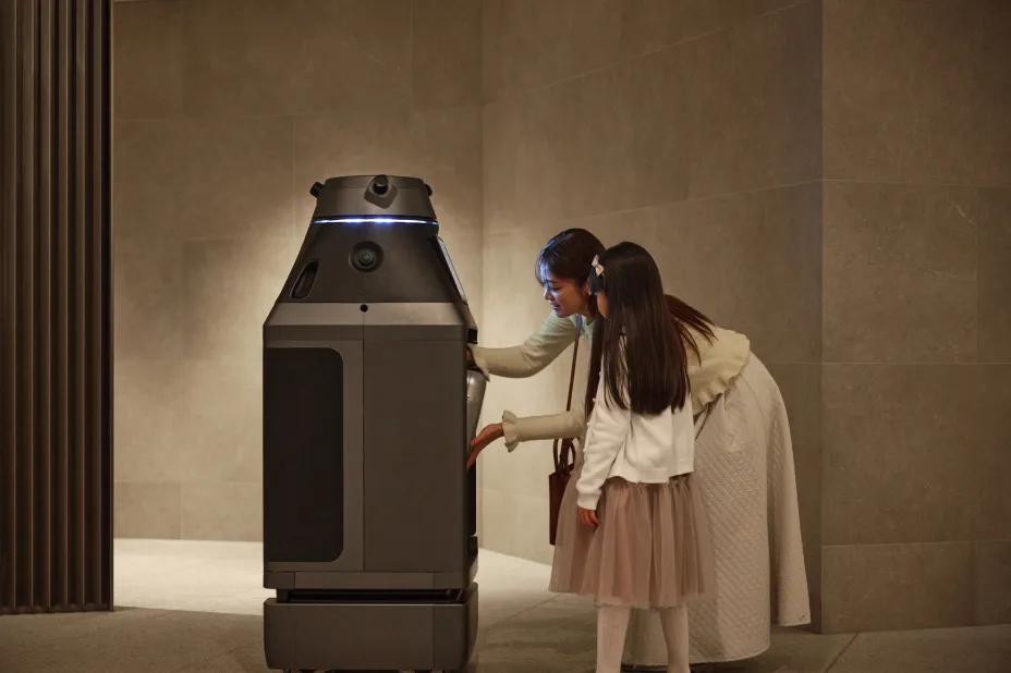 お出かけの際、ご自身のスマートフォンから専用アプリを使うとロボットをご自宅まで呼び出すことができ、荷物をエントランスまでお運びします。